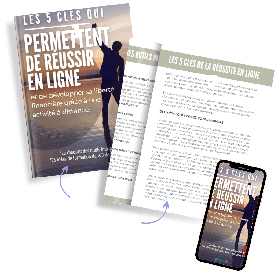 C'est parti ! tu vas recevoir le guide des 5 clefs qui permettent de réussir en ligne